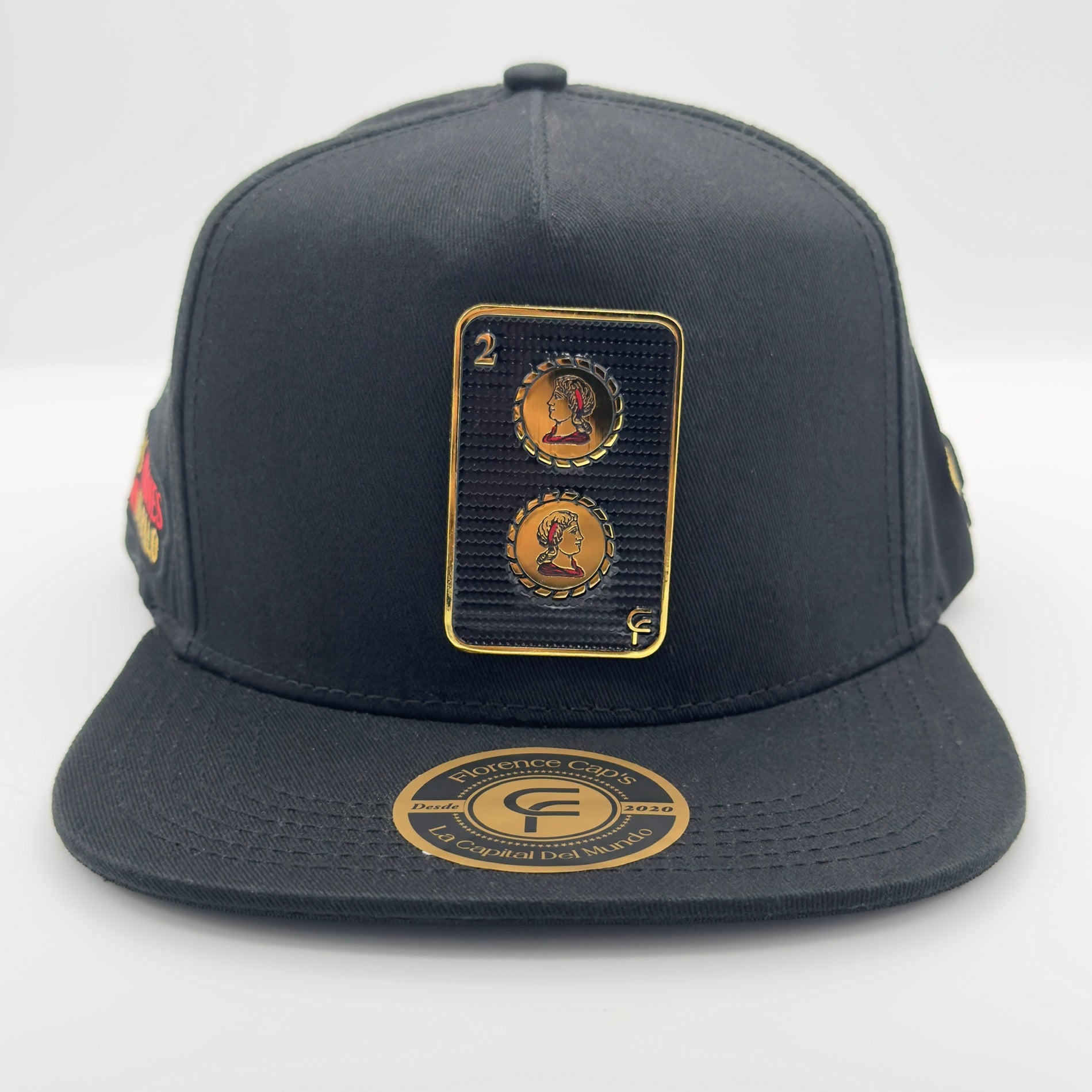 Two of Golds in its black version is a cap created by Florence Caps featuring a shiny card containing two gold coins on the cap. This cap is 100% original and very high quality you cant count with its original seal of authenticity.